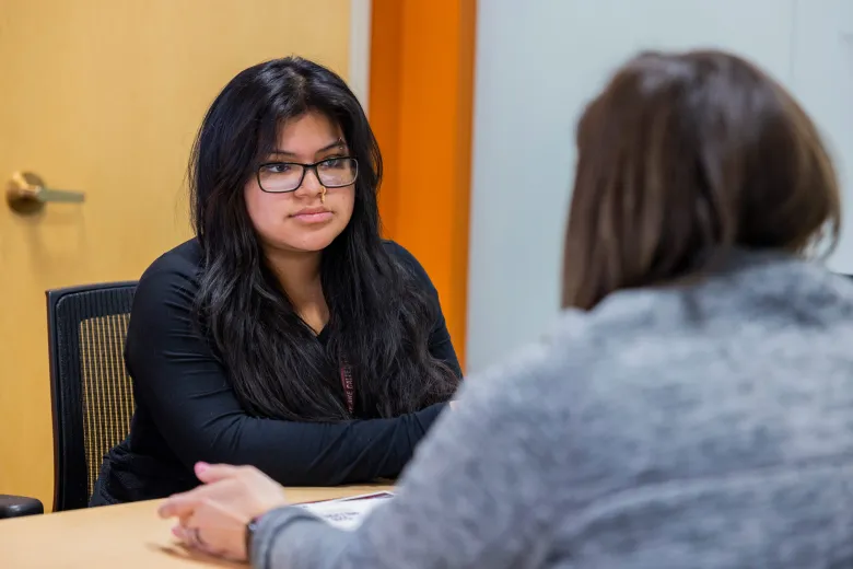 They talked about how to find some classmates who might want to carpool to the campus once school starts, and split the $195-per-semester parking fee. That class registration for the fall begins in May. Which days and at what hours to schedule classes, if Guaman decides to continue to work part-time. How one of her employers, a fast-food chain, offers scholarships to its employees that could help her pay for textbooks and other costs. Whether to take out student loans.