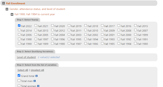 In this case, you might want to look at total fall 2022 enrollment of undergraduates, in which case you’d select like this: