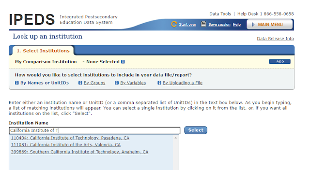 Go ahead and practice getting information out of IPEDS like this. You cannot break anything. There is a Start Over button in case you get stuck.